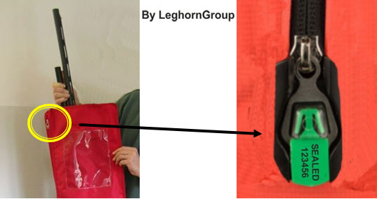 The security bag is also sealable with a sequentially numbered security seal (ZIPSTOP).